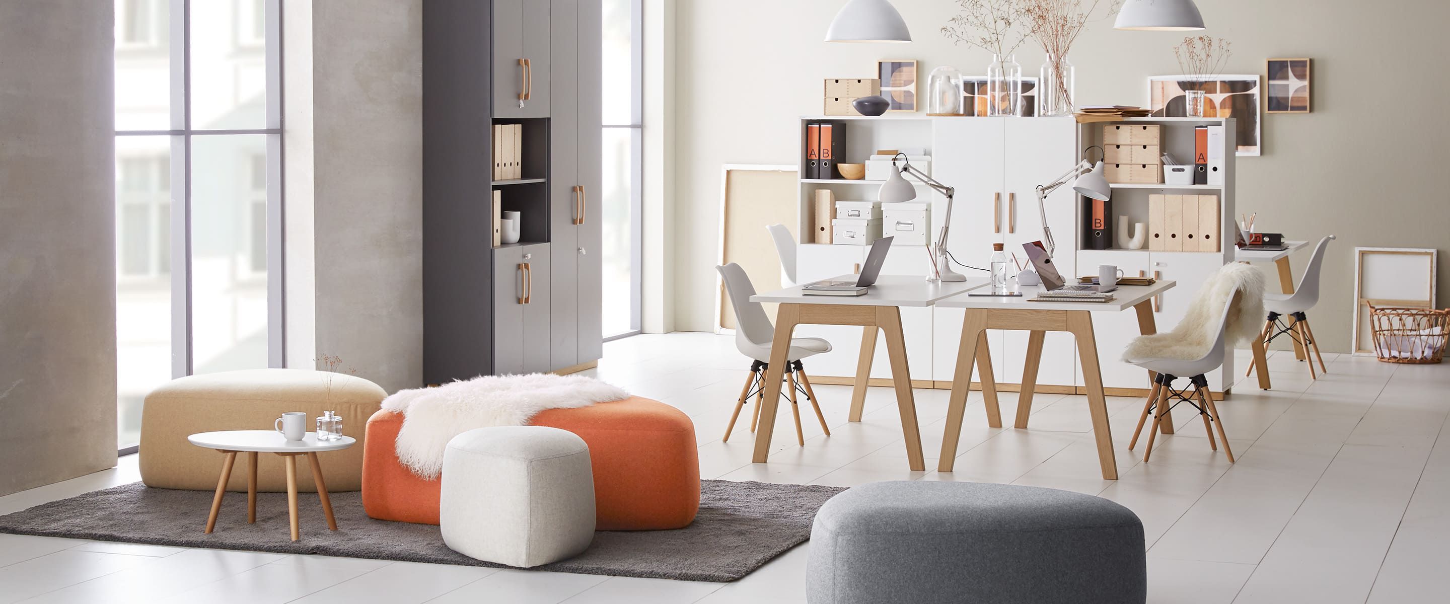 Es entstand ein Office, das sich fast wie ein zweites Zuhause anfühlt. Die Kombination aus funktionalen Arbeitsplätzen und weichen Lounge-Elementen schafft eine Balance zwischen Produktivität und Wohlbefinden. Helle Farben, natürliche Materialien und wohnliche Details sorgen für eine angenehme, inspirierende Umgebung.